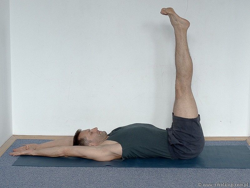 - Zegnij nogi w kolanach i wyprostuj je do 90 stopni w górę.